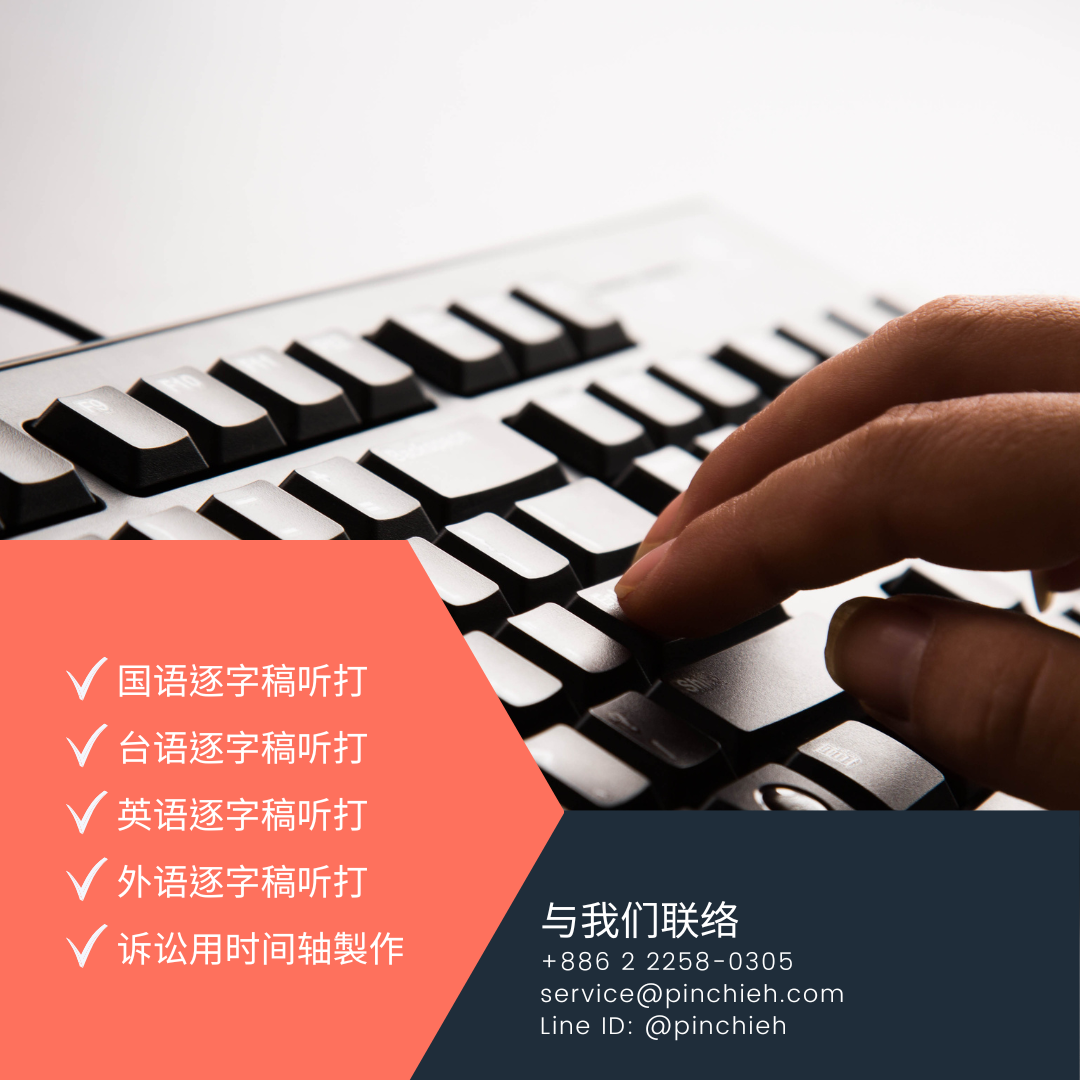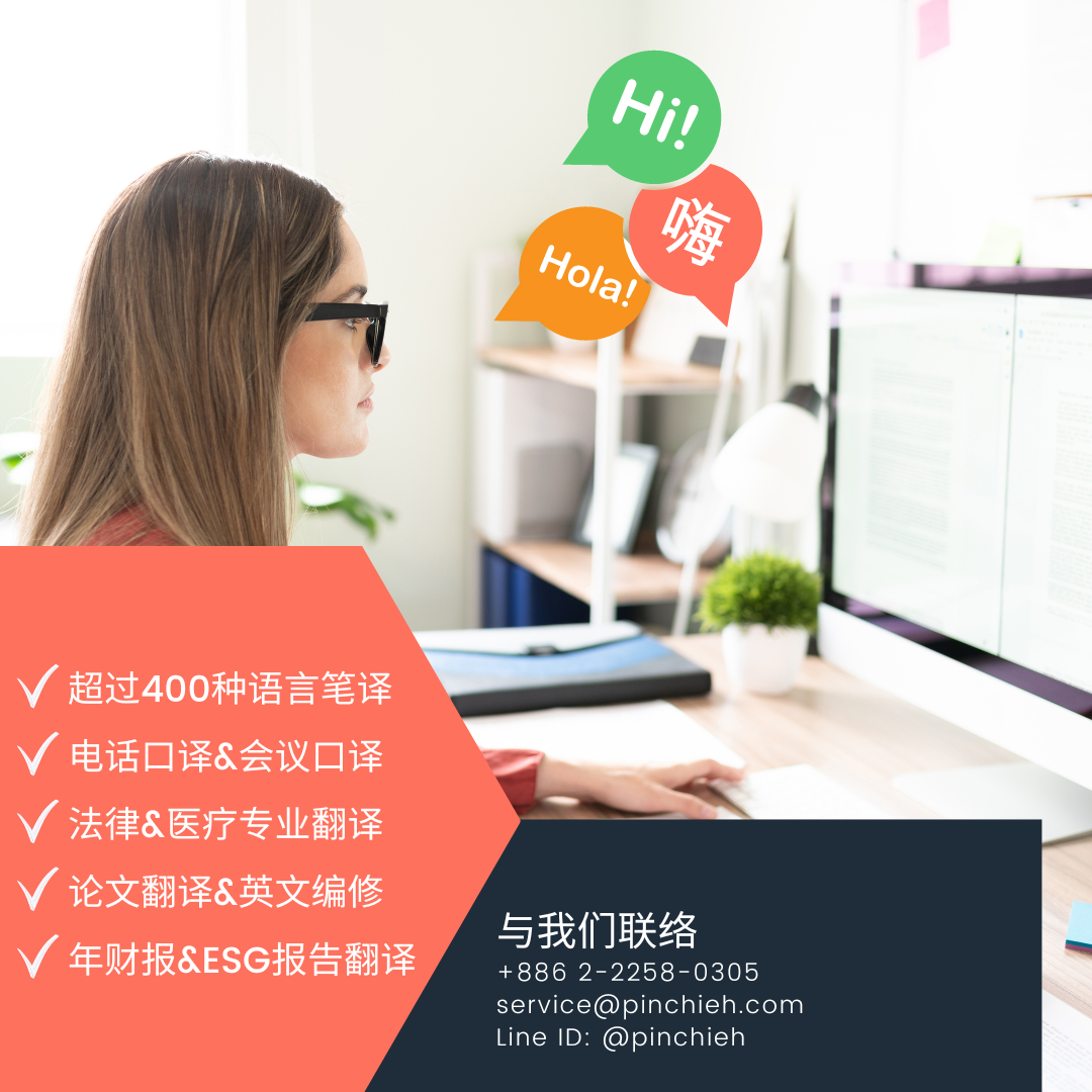 本公司官网之所有图片内容、网页设计、文章由品捷翻译社与品捷翻译有限公司共同整理,一经发佈即受到着作权法保护,品捷翻译社与品捷翻译有限公司,地址: 新北市新庄区庄崑路33号1楼,E-mail: service@pinchieh.com,TEL: +886 2 22580305,着作权所有,未经正式书面授权禁止转载节录,任何盗用、盗连行为将法律求偿,绝不宽待。